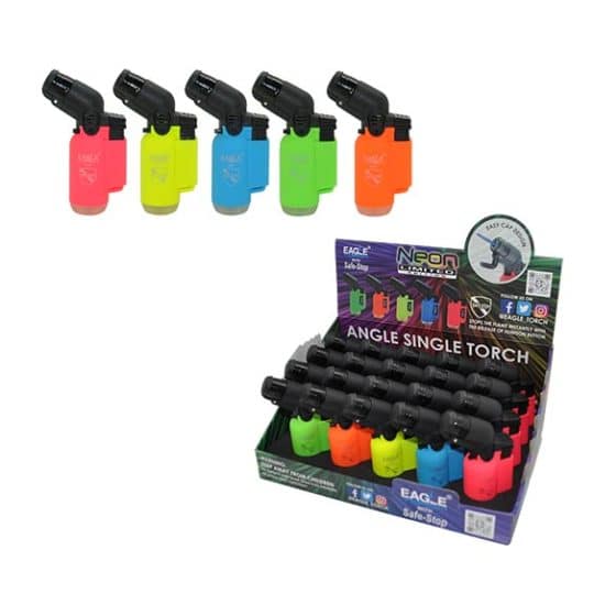 Neon Angle Torch with Flip Cap & Safe Stop Lighters